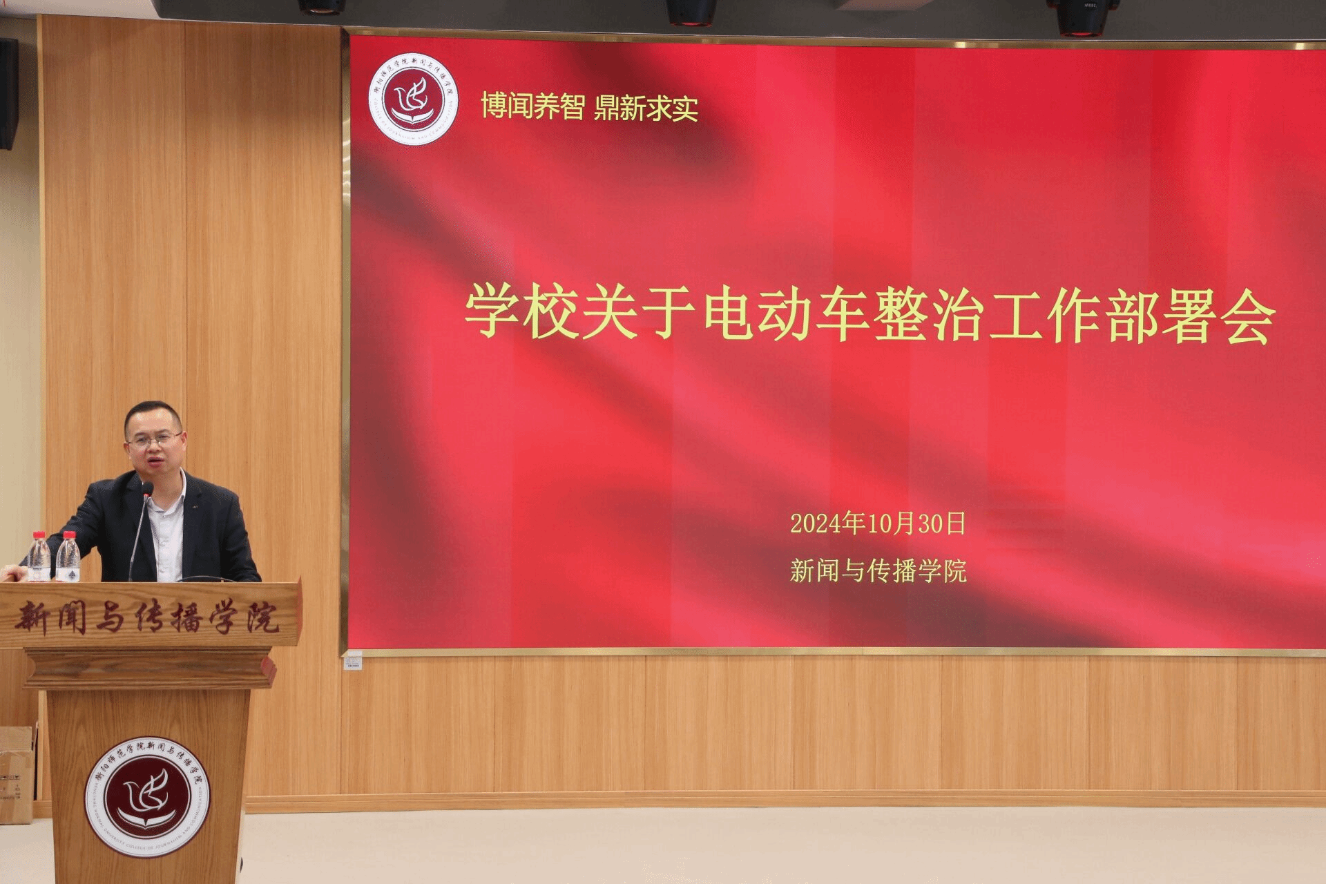 在学校关于电动车整治工作部署会议上,董书记强调同学们要按学校要求提交好相关材料,对“三无“车辆要及时处理,骑电动车的同学一定要注意安全。