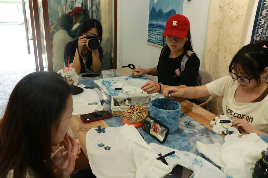 在这里,我们不仅可以看到柳江的夜景,还可以乘坐水上公交感受夜晚的江风,更可以领略扎染文化。用一块白布,染上蓝色,在染缸旁静候它的变化,每一块白布都焕发出了它独特的风情。