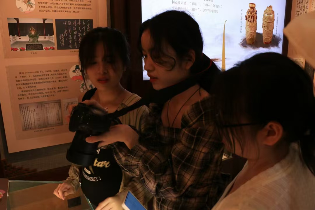 与此同时,另一组同学则穿梭于柳侯公园、天主教堂和鑫中联大厦之间,用镜头捕捉了柳州城市印象的多样性和包容性。在柳侯公园,他们观看了柳侯祠和柳宗元衣冠墓,感受到了古韵风格;在天主教堂,耶稣基督像静静伫立,展现了欧式风情;而鑫中联大厦的白色浮雕和铜制天使驾马,则让中西文化在这里碰撞出别样的火花。夜晚,他们走进柳州风情港夜市,品尝特色美食,拍摄夜晚的喧嚣与繁华,深入体验了柳州的美食文化。