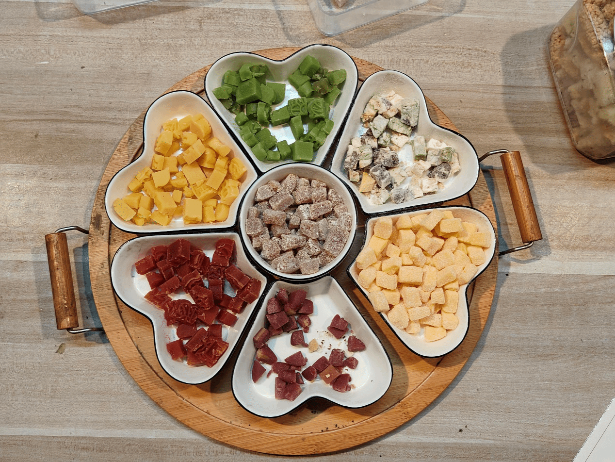 各种精美的糕点也是当地的特色,一口下去,香甜的内馅瞬间在舌尖散开,或是细腻豆沙的醇厚,或是清新果脯的酸甜,亦或是芝麻花生的香浓,甜而不腻,酥软可口。