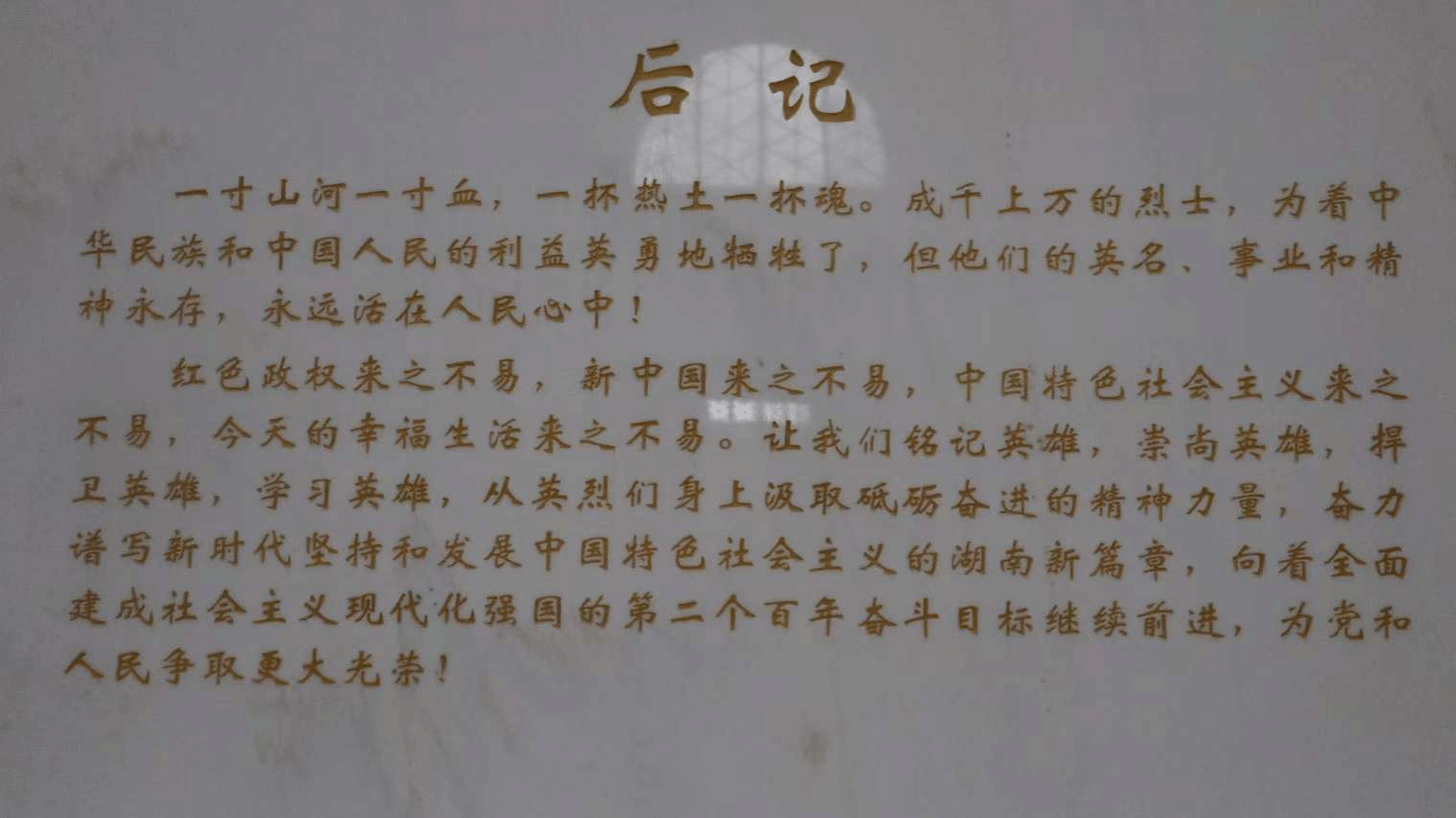 进入纪念塔内,会更有具象化可视化的印象——瞻仰烈士名录和看到英烈遗像与事迹,深深被震撼,碑内是一个个为革命事业前仆后继的“丰碑”。英魂殿内,前言与后记,都让作为湖南青年的我们,对革命烈士有了更具象化的认识。