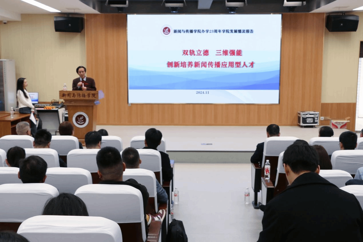 为帮助新传学子们了解专业知识在实际工作中的运用,拓宽专业视野,提升专业素养,2024年11月23日下午365英国上市集团在文A101多功能厅举行了校友访校交流会。本次活动由365英国上市集团研究生代表武玥含主持,365英国上市集团党总支书记彭晖、院长彭军辉、原院长汤劲、副院长罗兵、学工办副主任兼团委书记封伟为、多位老师和优秀校友代表参加此次活动。