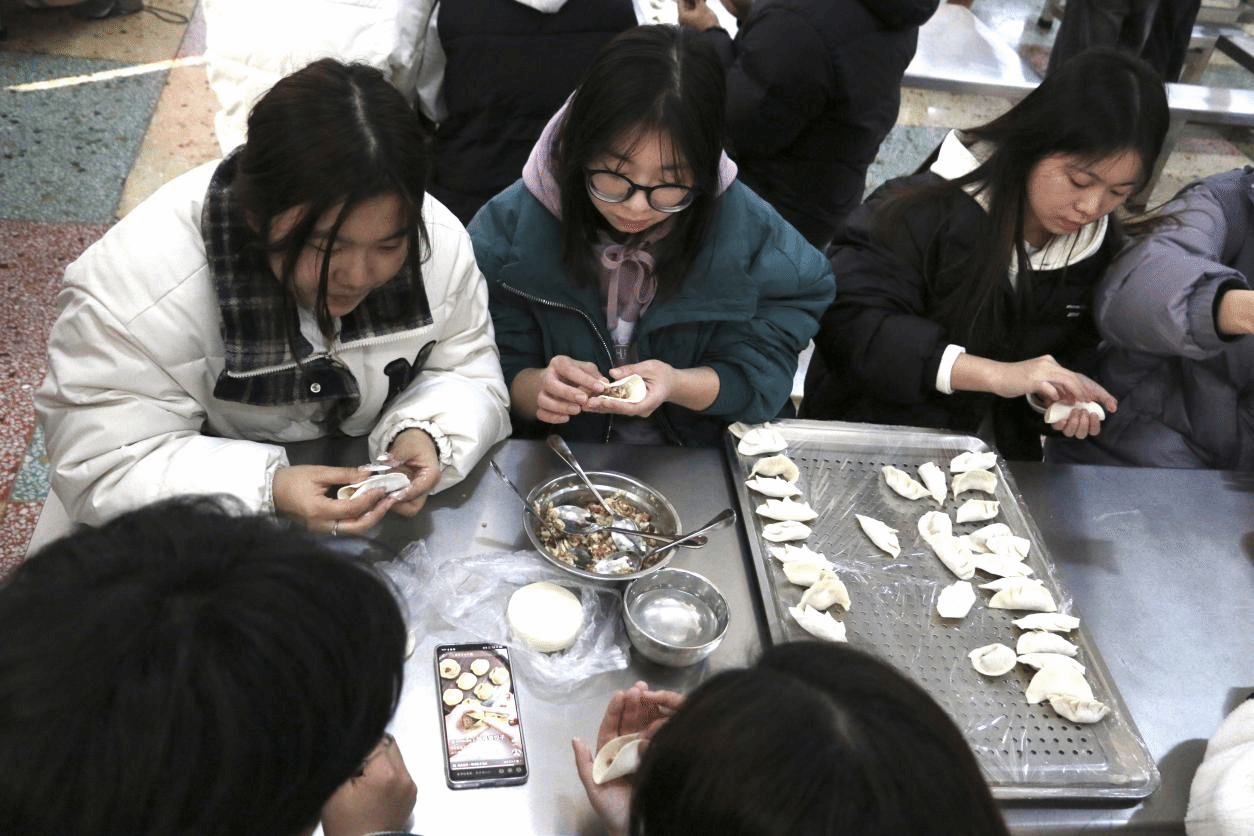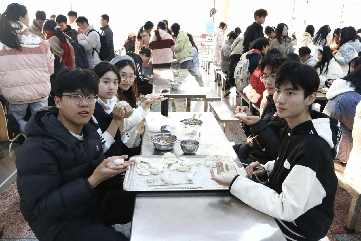 随着一阵饺子香气袭来,同学们纷纷自觉排好长队取饺子,在欢声笑语中共同品尝着美味的饺子。热气腾腾的饺子驱散了冬日的严寒,每个人的脸上都洋溢着幸福的笑容。