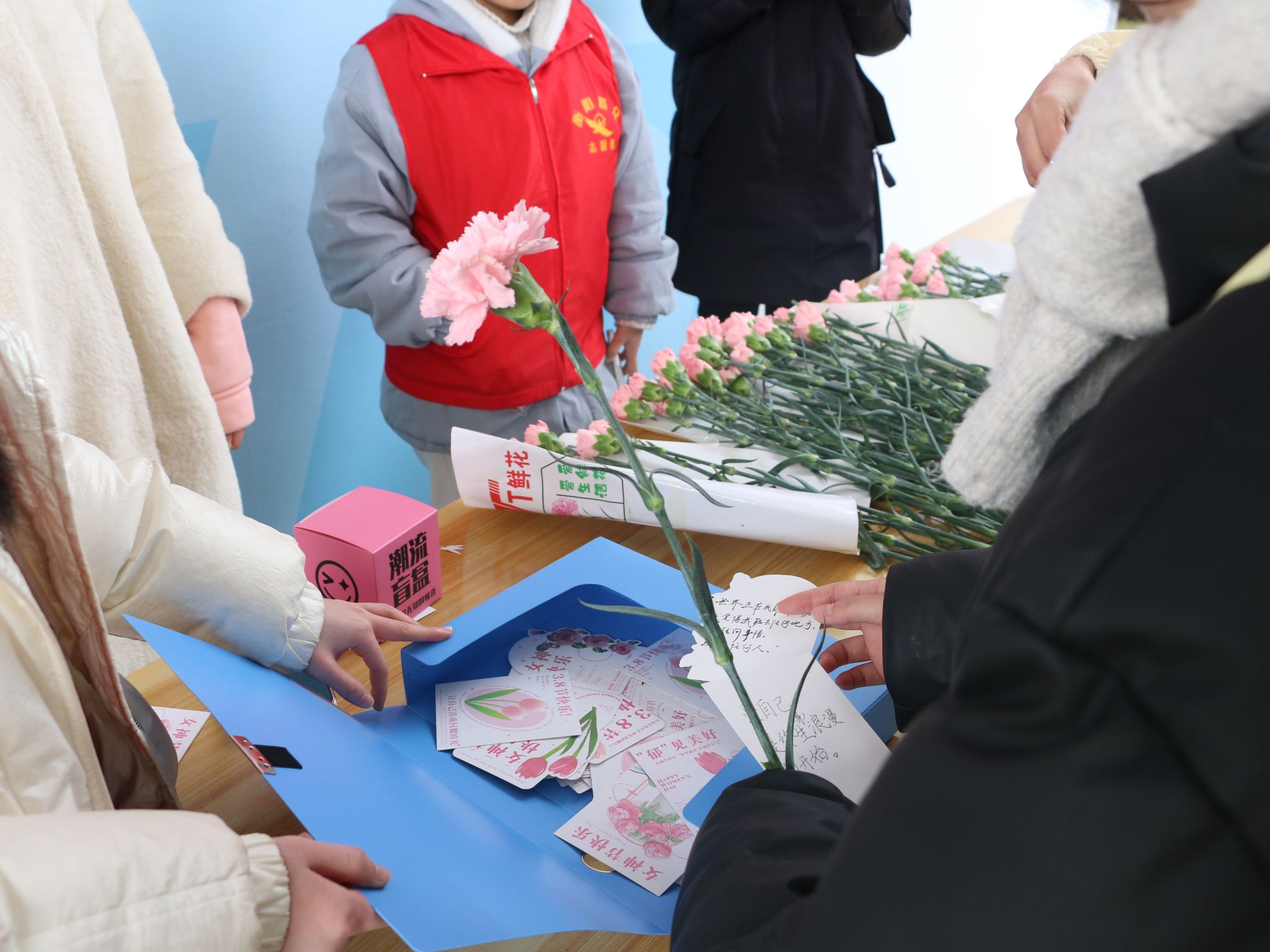 踏入活动现场,便能看到一束束鲜艳的康乃馨整齐排列,每一朵鲜花都传递着对女性最诚挚的赞美。