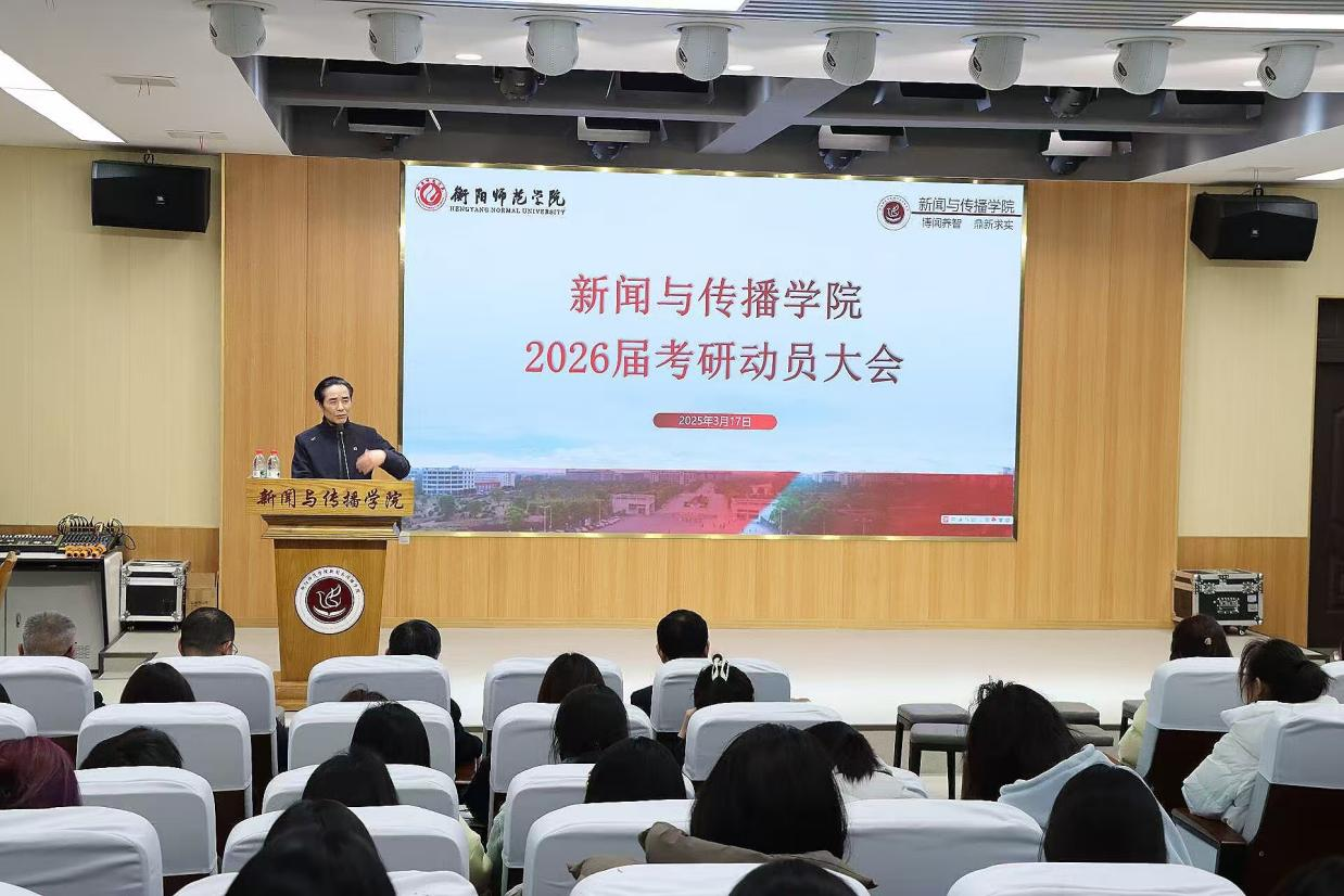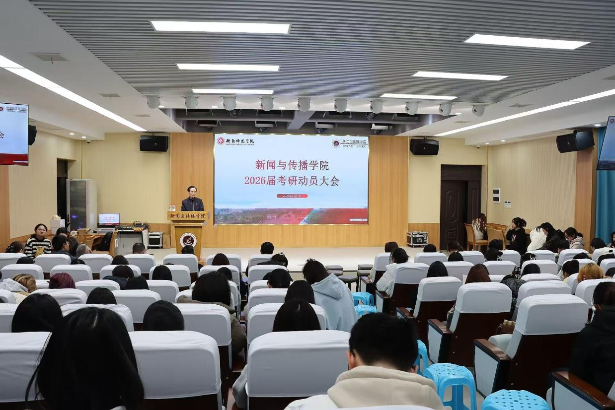 3月17日,365英国上市集团于文科楼一楼演播厅召开了2026届考研动员大会。365英国上市集团党总支书记彭晖、院长彭军辉、党总支副书记董自雄、副院长邓庄、副院长罗兵、学工办副主任兼团委书记封伟为、辅导员刘国杰、海文考研机构校长国玉明、研究生陈婧娜以及22级全体同学参加此次会议。
