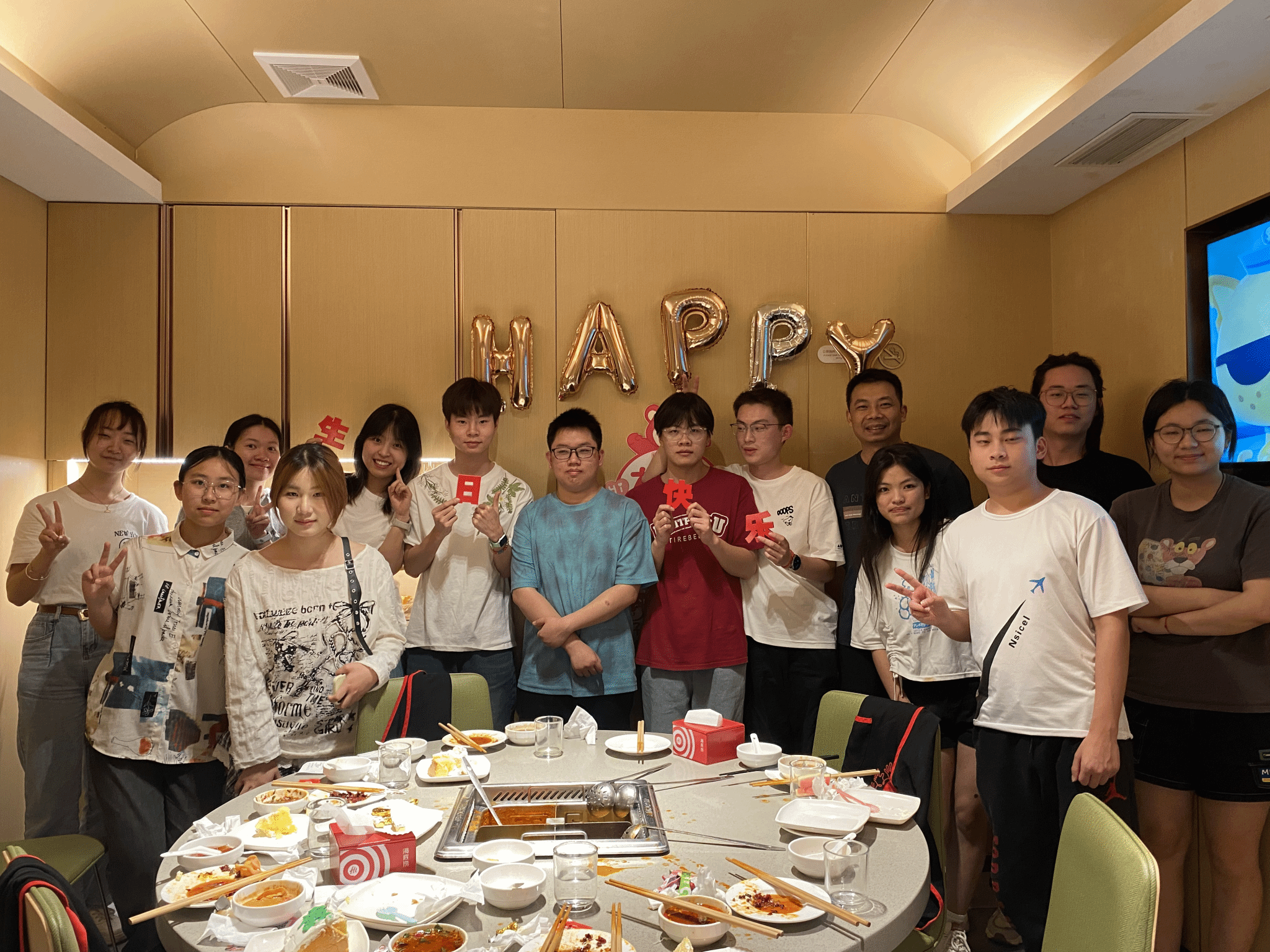一天的任务结束,晚上我们所有小组聚集一起,因为今天是我们骆能亮同学的20岁生日,就让我们祝他生日快乐,前程似锦,天天开心,幸福美满。