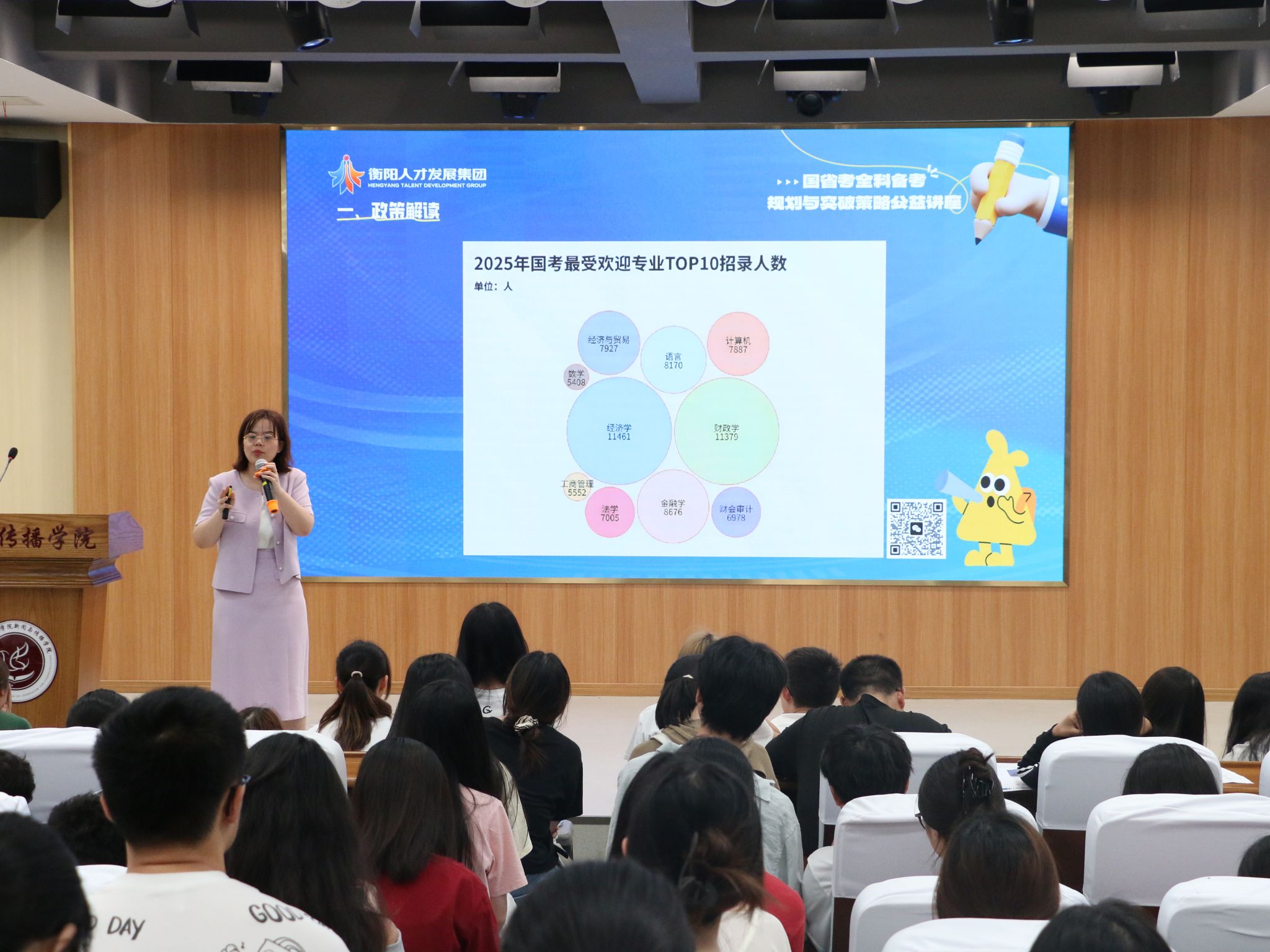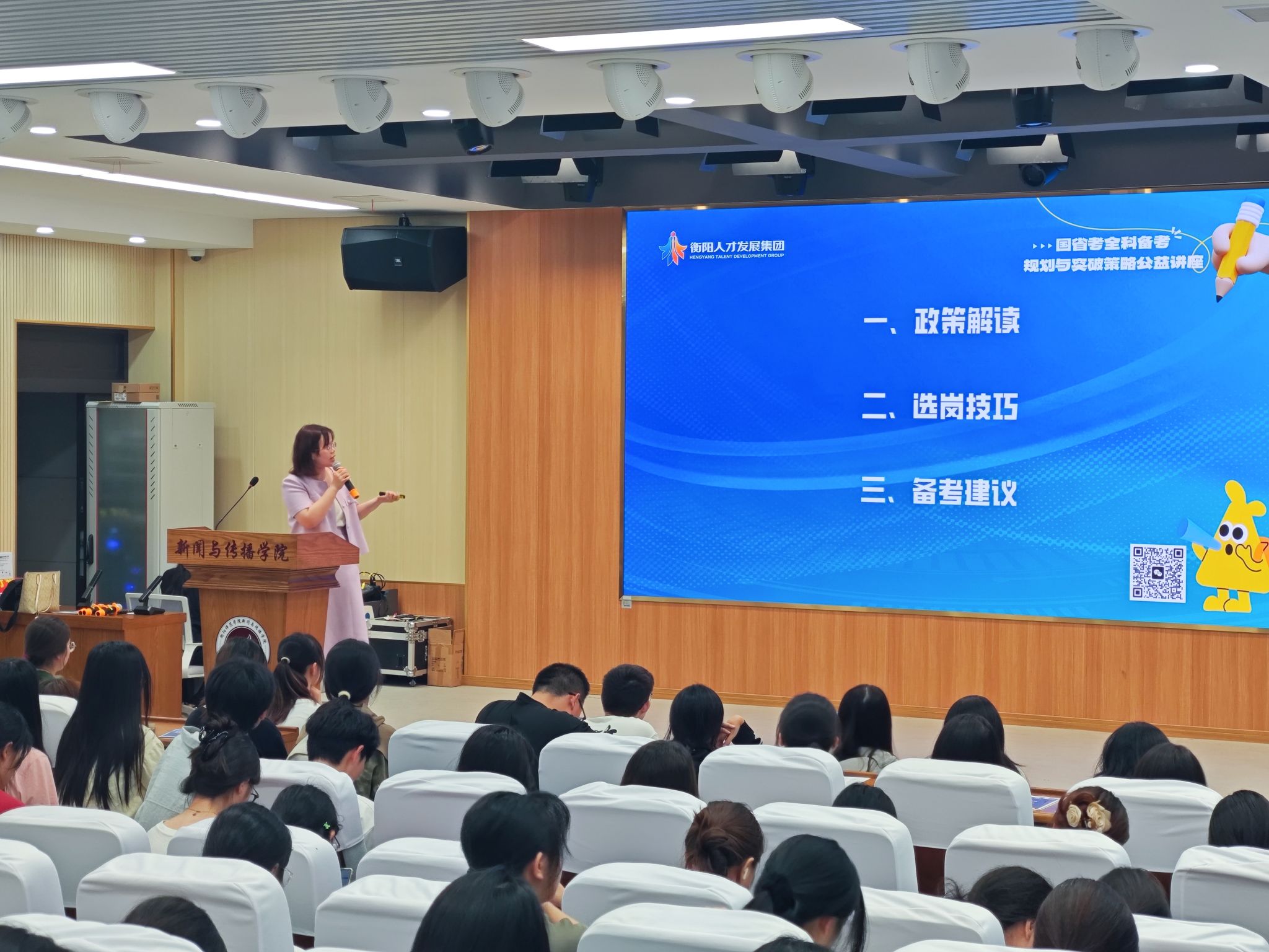 为帮助同学们更好地了解考公政策及策略,2025年5月26日,365英国上市集团特于文智楼107演播厅举办公考讲座。我院邀请了衡阳市人才发展集团公考中心的罗晴主任和王老师为同学们进行考公分享。