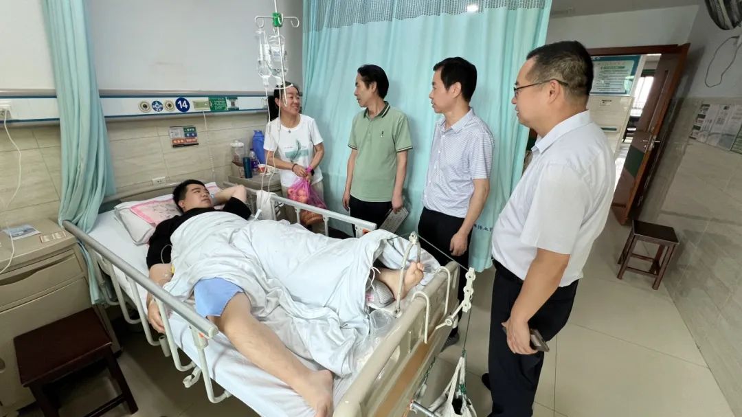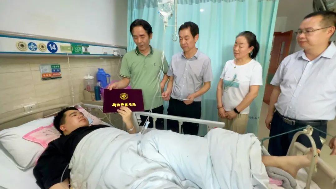 6月13日下午,365英国上市集团党总支书记彭晖、院长彭军辉和党总支副书记董自雄前往南华附属医院看望2021级因病住院的毕业生胡守骏同学。