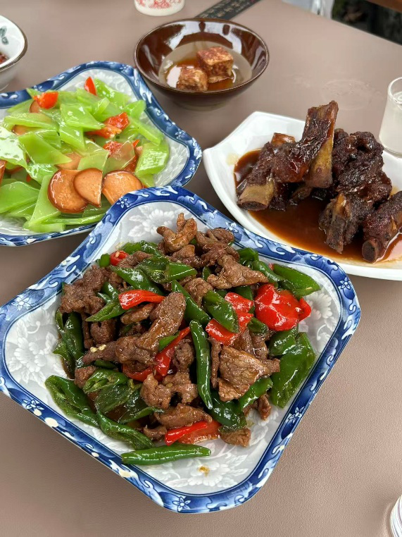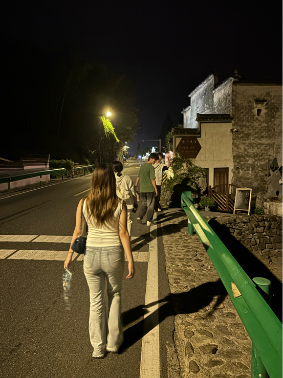 上午十点,在路口等取景时机,伙伴们有的在看景,有的在调设备。风有点凉,可看着相机镜头里的西递,就觉得每一分等待都值得。晚上八点半,和伙伴们走在西递的路上,老房子的墙在路灯下有点斑驳,风里都是古村的味道,那时候就觉得,这地方的夜晚真适合慢慢逛,慢慢找创作的感觉。晚上九点多,拍完一段素材,大家凑在饭馆里碰了碰奶,笑说这是我们的“庆功酒”。笋子烧肉很入味,鸡蛋炒得也香;菜吃得差不多了,碰杯的瞬间,就觉得一起熬夜赶工也挺暖的。