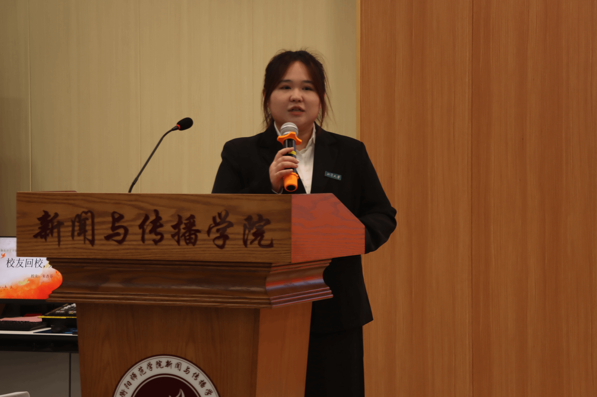 在实践方面,朱杏芬以自身在薪火传媒的实践经历为切入点,强调“实践是最好的老师”。任职期间,她在内容采编、摄影摄像等实战工作中积累了大量经验,在省级媒体发布稿件20余篇,其中一篇稿件阅读量高达20万余人次。她鼓励学弟学妹要敢于尝试、不怕犯错、主动“折腾”。同时特别提到,学院为同学们提供了薪火传媒、工作坊课程、专业见习等宝贵的实战机会,大家应学会利用这些资源,主动对接、深度参与,在实战中不断提高自己的专业能力。并且结合当前新传行业的人才需求趋势,朱杏芬提出新传人要争当“六边形战士”,打破“单一技能依赖”的局限。她解释道,如今媒体行业更青睐“全方位”人才,仅掌握单一技能难以满足岗位需求,必须同步培养写、拍、剪等多维度能力,让全面能力成为自身的核心竞争力。此外,她还特别强调沟通协作能力的重要性,认为在团队项目中,精准表达需求、合理使用话术,能大幅提升工作效率。