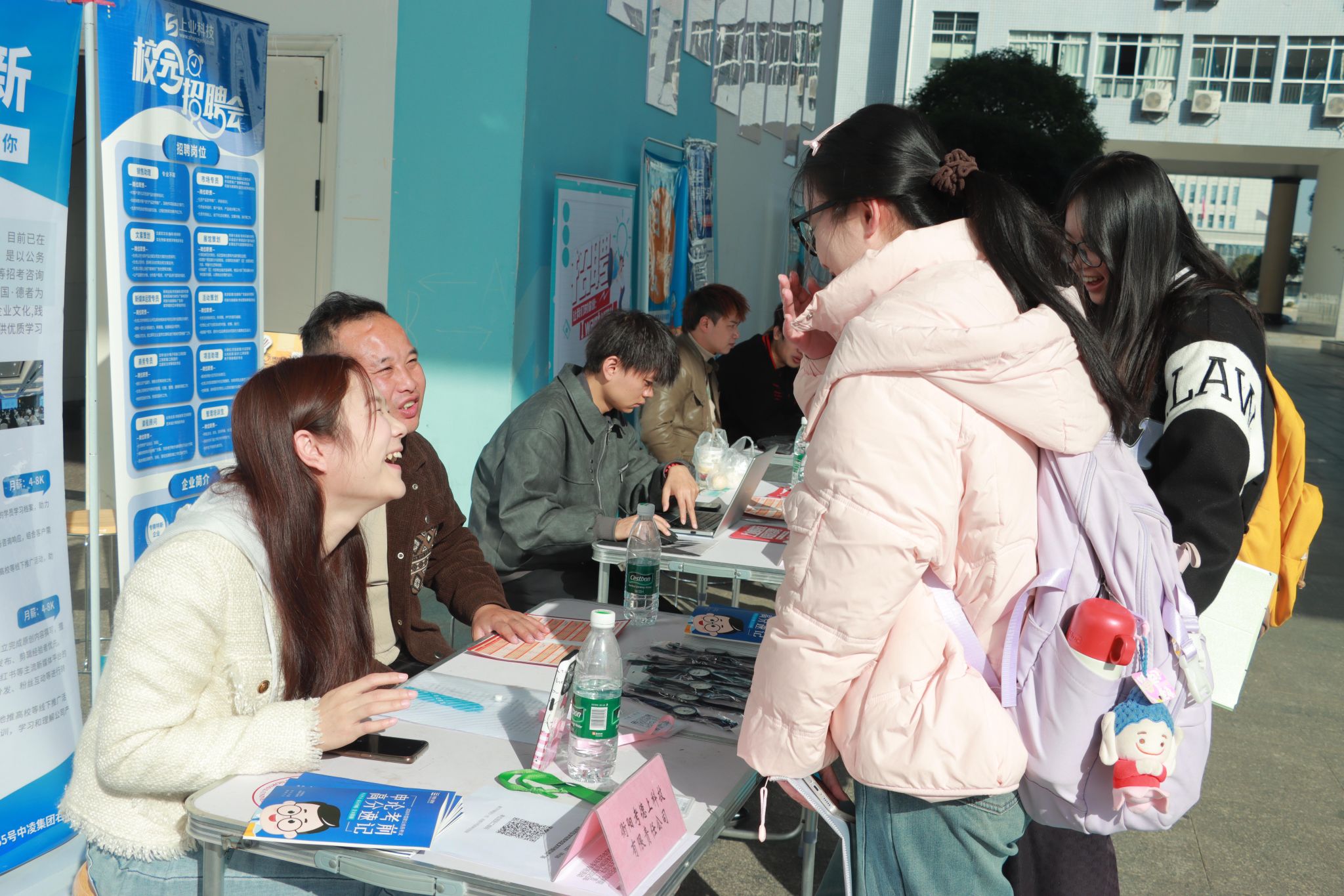 招聘现场,学院老师们与企业招聘负责人交流,介绍了学院毕业生整体情况并了解了企业岗位需求。