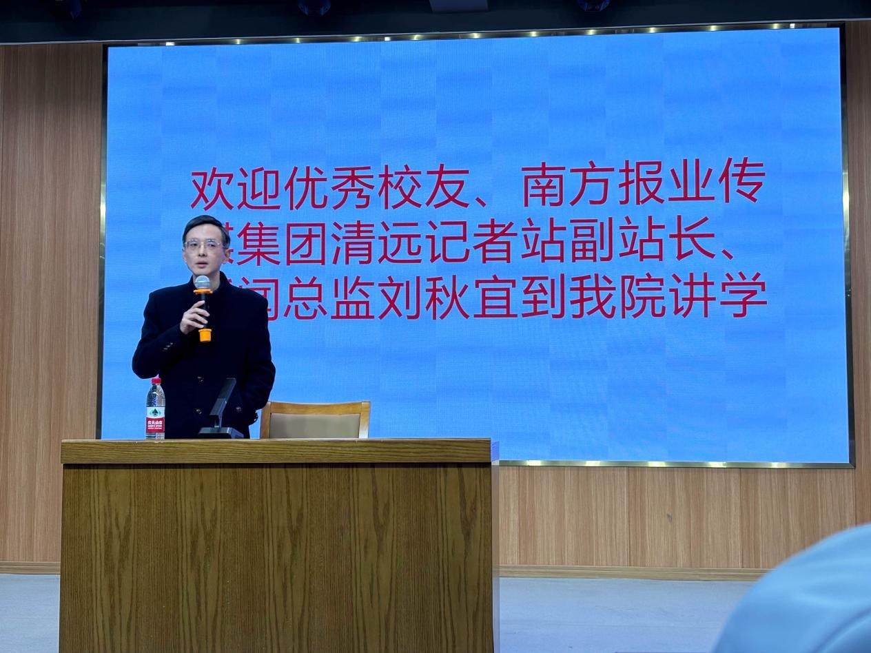 在讲座上,刘秋宜结合自身从业经历与行业观察,以南方报业为例,围绕“媒体转型、职业发展、能力培养”三大核心主题,分享了南方报业的发展故事、自身从业经验,还有给新传学子的成长建议。
