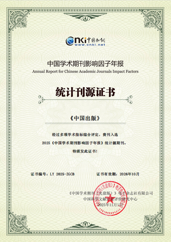 《中国出版》是由国家新闻出版署主管、中国新闻出版传媒集团主办权威核心期刊,近5年位列中国学术期刊影响力指数及影响因子年报“信息与新闻出版学”期刊影响力指数一区(Q1)。