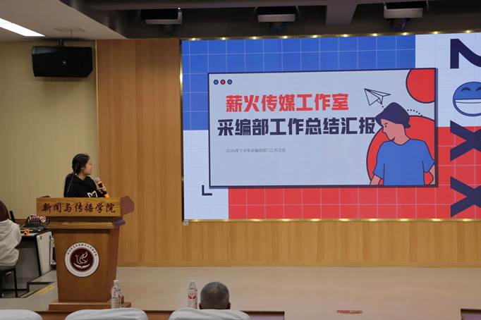 薪火传媒工作室主任喻雅琪对本部门今年所完成的工作进行复盘与汇报。采编部累计开展任务30余次,完成校内报道17次,在“衡师新传人”“衡州城事”“红网”“新湖南”等校内外平台发布稿件30余篇,多篇作品登上省级媒体,展现了扎实的文字功底与新闻敏感。影视部表现尤为亮眼,出勤任务40余次,发布作品33篇,覆盖“衡州城事”“衡师新传人”等平台,总阅读量突破1.5万。从校运会跟拍到《城市美容师》纪录片,从专业介绍视频到“湘超”助威活动,镜头始终对准校园活力与城市温度。策划设计部则在活动策划与视觉设计上持续发力,完成“关注赢好礼”系列活动4场,设计海报、易拉宝等宣传物料十余份,同步推出节气节日推文9篇,以创意赋能内容传播。