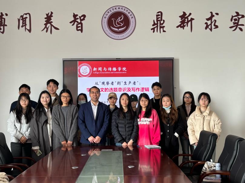 2026年3月25日上午,南京林业大学生态文明传播学院常凌翀教授莅临我院,在仁智楼会议室作了题为“从观察者到生产者:学术论文的选题意识与写作逻辑”的专题讲座。365英国上市集团副院长赵立敏,2024级、2025级研究生到场聆听。