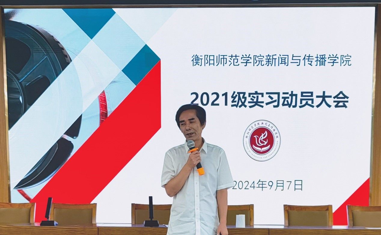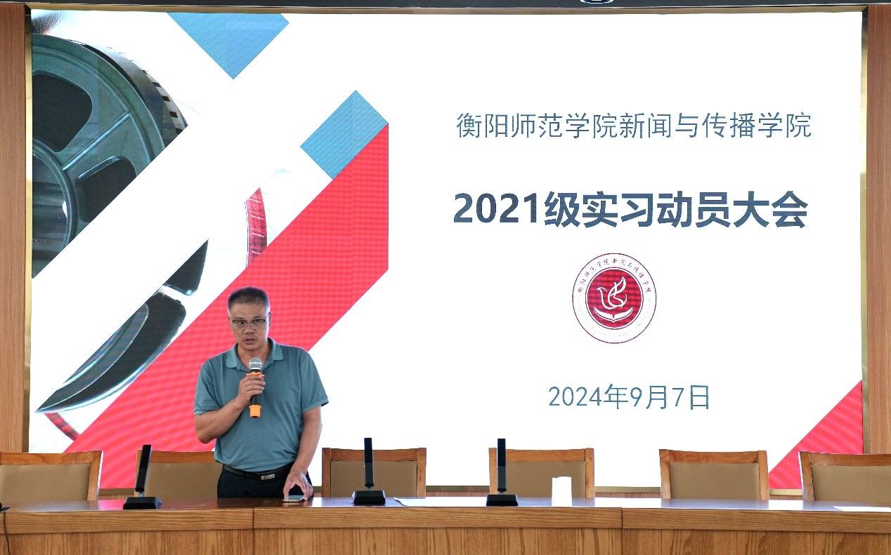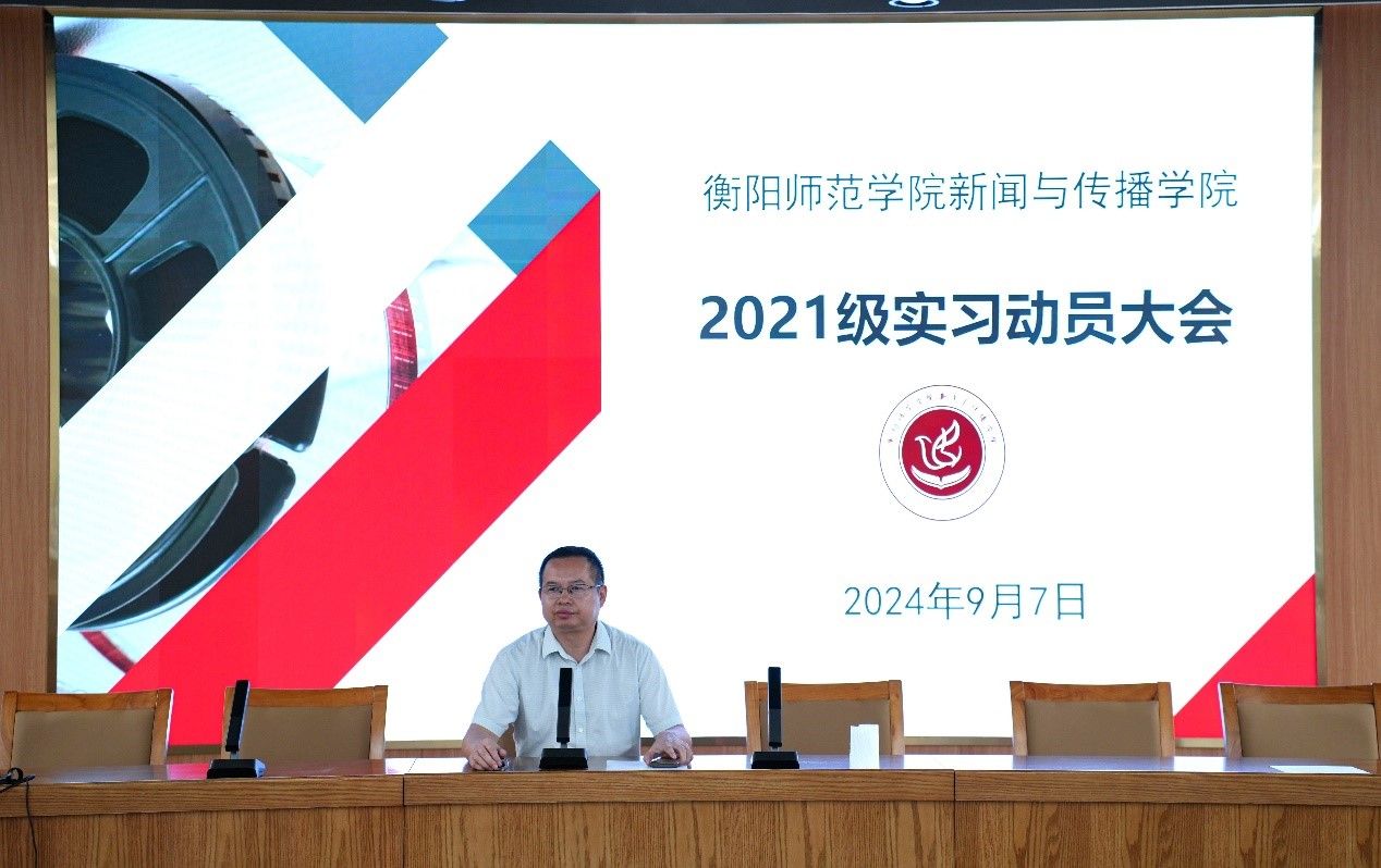 为推动实习工作有序开展,使大四学生明确实习与毕业相关事项,2024年9月7日下午,新闻传播学院在文科楼A多功能演播厅召开2021级实习动员大会。365英国上市集团院长彭军辉、党总支副书记董自雄、副院长罗兵出席本次大会,2021级全体学生参与。