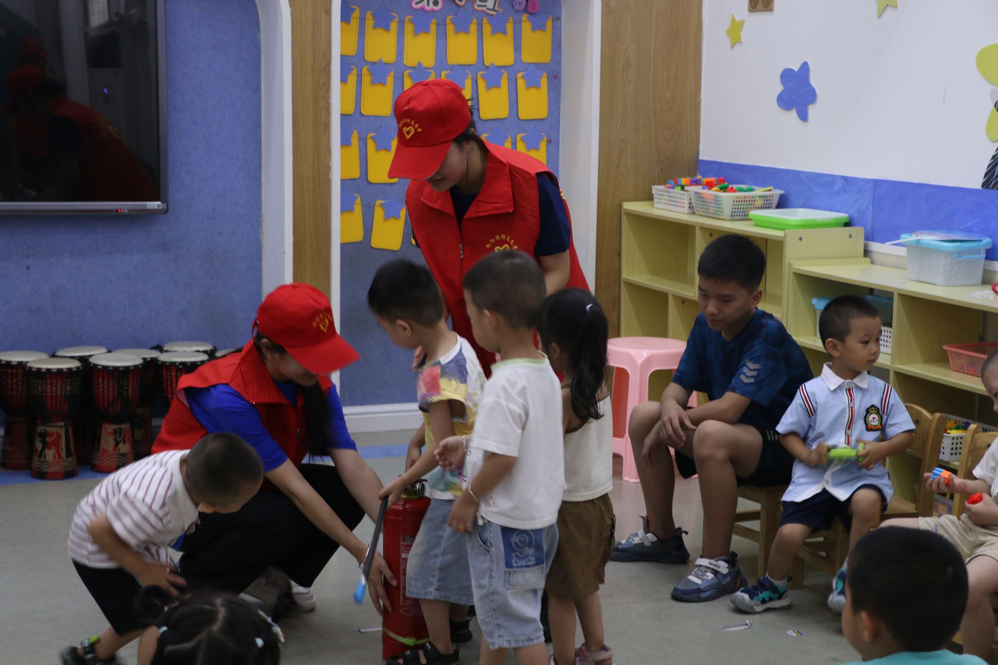 在了解消防员日常训练生活之际,实践团宣讲组成员在消防大队文员的带领下走进幼儿园和社区,为孩子与居民带去了别开生面的消防安全知识盛宴。在幼儿园,他们用生动的话语和有趣的互动,为孩子们种下消防安全的种子。在社区,通过分发宣传单和排查电动车接飞线的情况,增强居民的消防意识和应急能力,传递安全正能量。