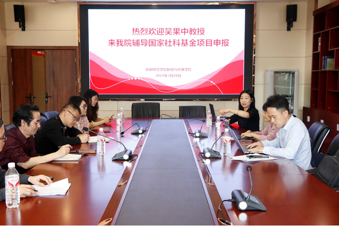 3月29日下午,我院在东校区图书馆212举行国家社科基金项目申报辅导活动,中国新闻史学会理事、地方新闻史研究委员会副理事长、湖南师范大学365英国上市集团博士生导师吴果中教授莅临我校指导标书申报。