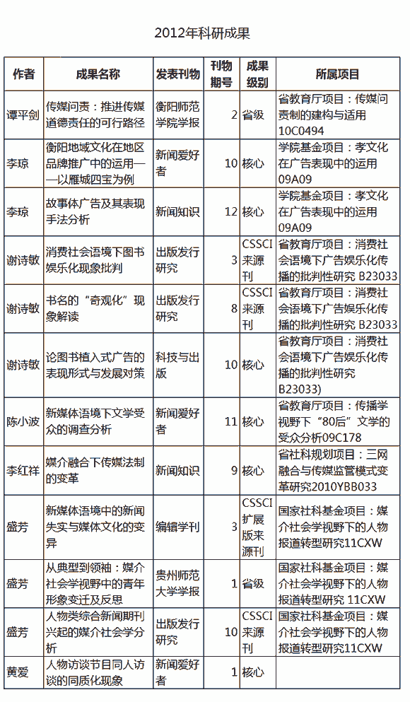 2012年科研成果