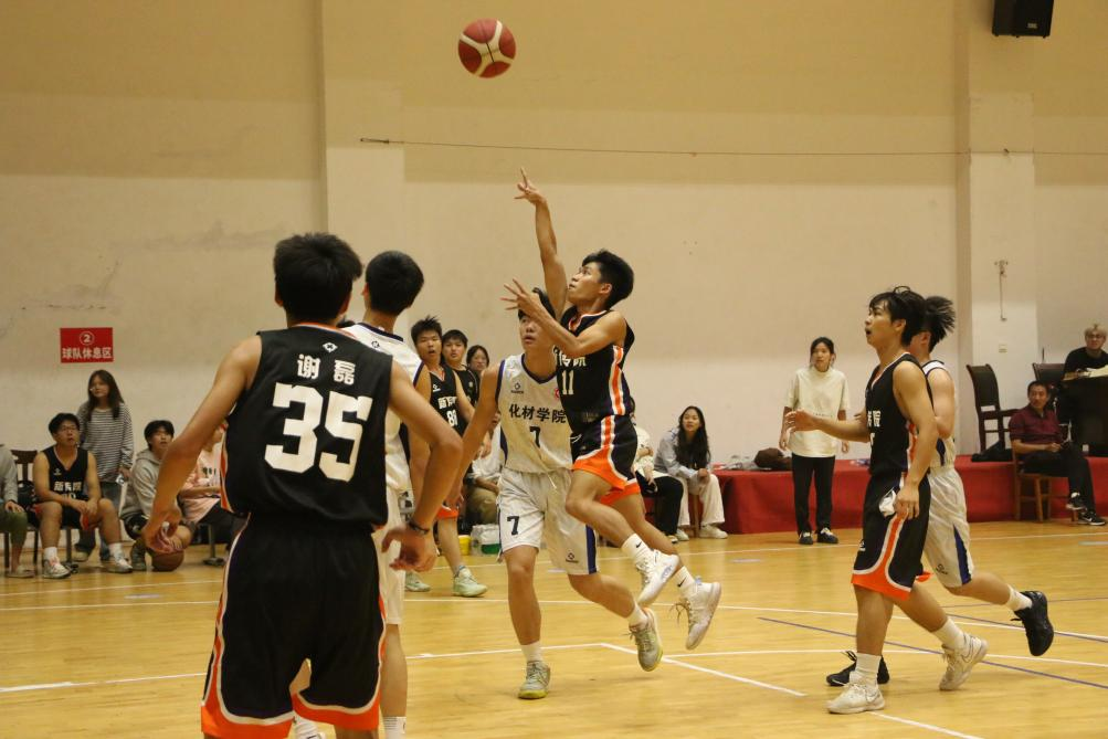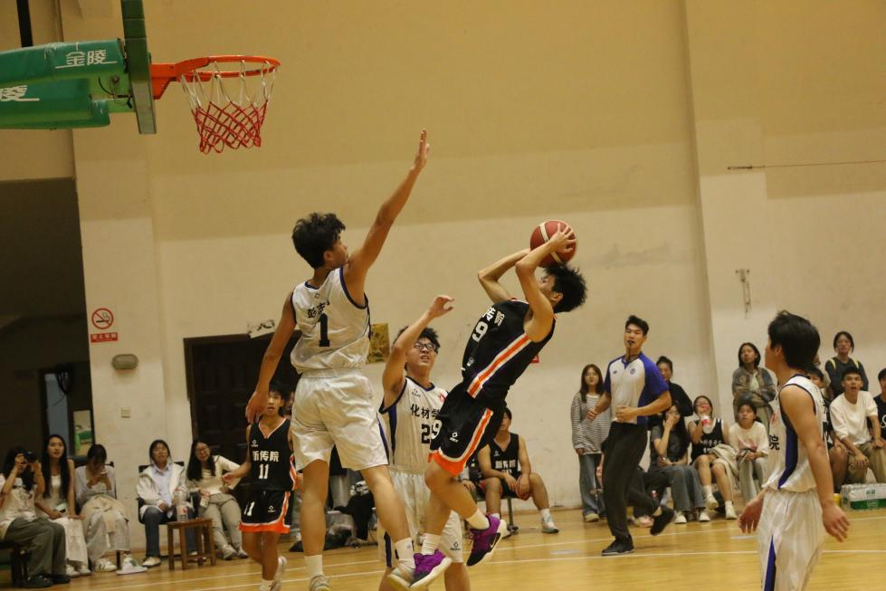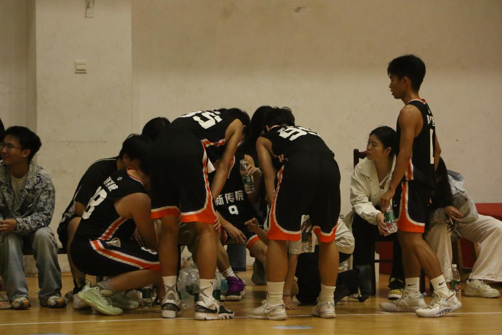 今天,新传男篮成功战胜了此前未尝败绩的化材男篮,此场战役可谓是“火星撞地球”,是天赋与努力的碰撞,无论输赢,双方队员都付出了偌大的努力在拼搏!“迎新杯”A组的小组赛也正式收官,只有6人轮换的新传学院以优异的成绩成功打破质疑,豪取小组第一进入四强争霸赛!从不被看好到拿下小组第一,是每一位队员与教练的相互信任,是队员们每天刻苦训练的最终成果。未来的比赛只会越来越难打,希望新传男篮可以克服困难拿下最终胜利!