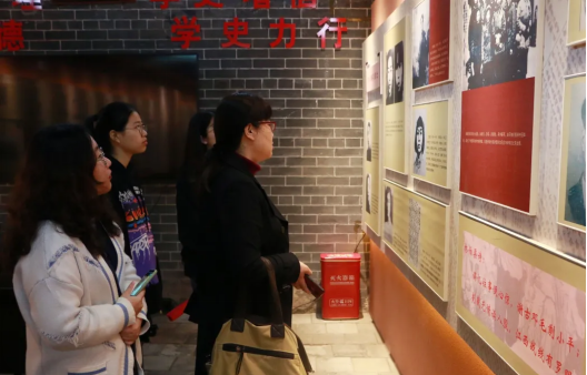 在展品陈列室中,周思敏副书记向同学们细致讲解了我院是由原衡阳师专、原衡阳教育学院、原湖南第三师范学校合并而成的建校历史,以及我校知名校友周里、张际春等人的红色故事。