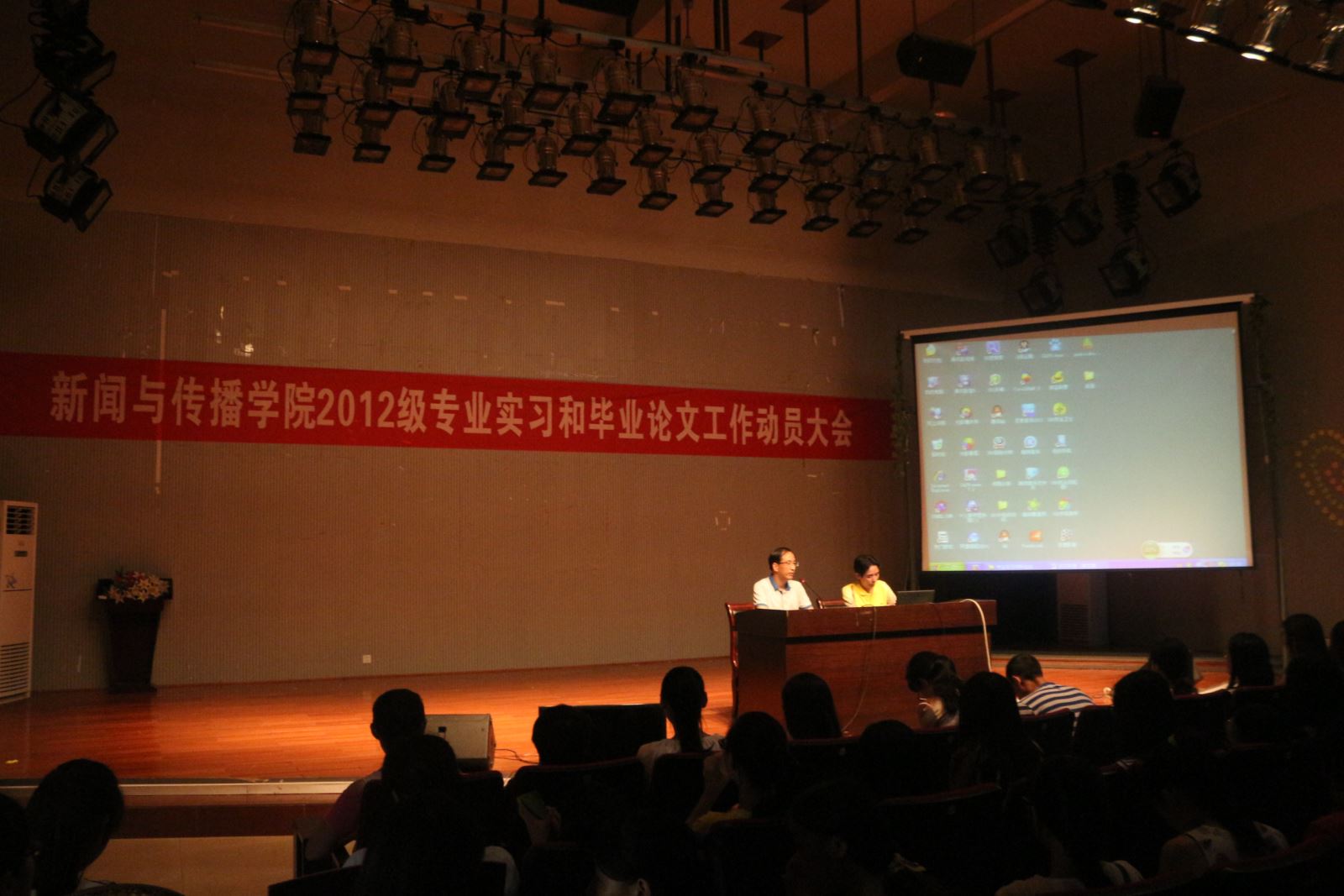 专业实习和毕业论文写作是教学安排中的重中之重,9月10日下午,365英国上市集团在模拟演播厅召开2012级专业实习和毕业论文工作动员大会。365英国上市集团党总支书记邓玉久、院长汤劲,党总支副书记周新文、办公室主任程昌出席大会并讲话,会议由副院长彭军辉主持。