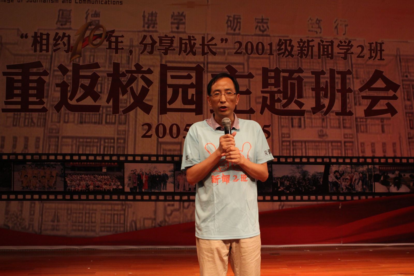 随后,我院党总支书记邓玉久上台致辞。邓书记表达了自己作为2001级新2班任课老师的荣幸感并分享了与大家共同成长的温暖回忆,并向大家介绍了学校与学院的发展状况,最后,邓书记祝愿同学们事业有成、家庭幸福。