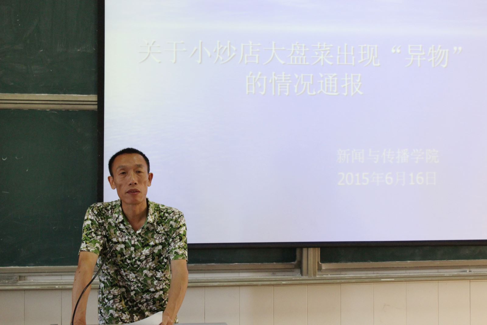 周新文书记首先介绍了本次事件的经过,并表示由于现场实物的缺失,单从图片上无法判断出异物是什么,因此学校还正在进行详细调查。学校会从维护学生利益出发,不推卸责任,诚恳面对,给同学们一个满意的答复,同时更会以此为鉴,加强对学校食堂的管理和监督。