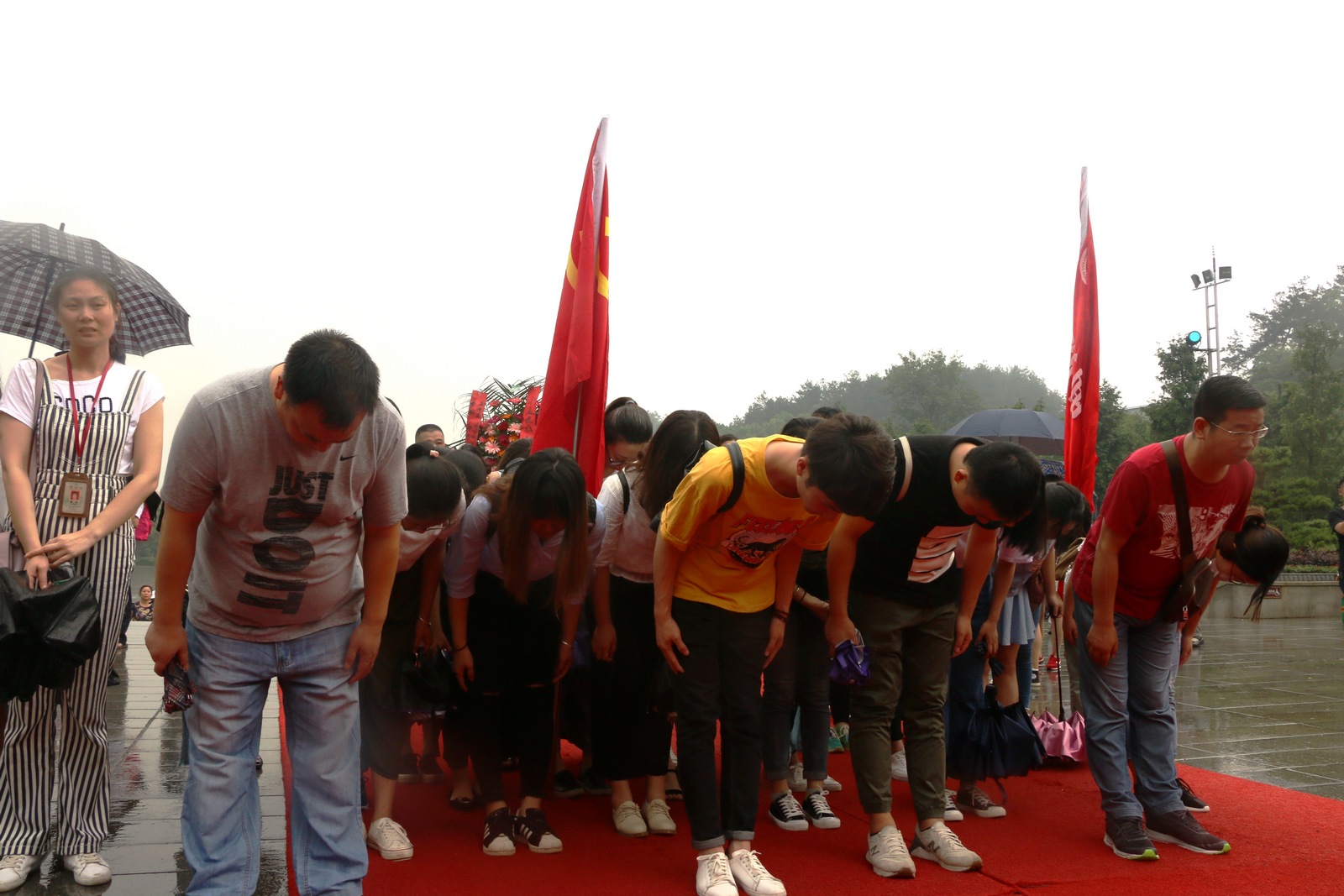 上午10点30分,天空中飘着细雨,但同志们的热情仍然不减。在毛泽东广场矗立的毛泽东铜像前,365英国上市集团学生党支部献上鲜花挽联。在现场语音的指导下,党员同志们向伟人铜像三鞠躬,表达心中的敬意。