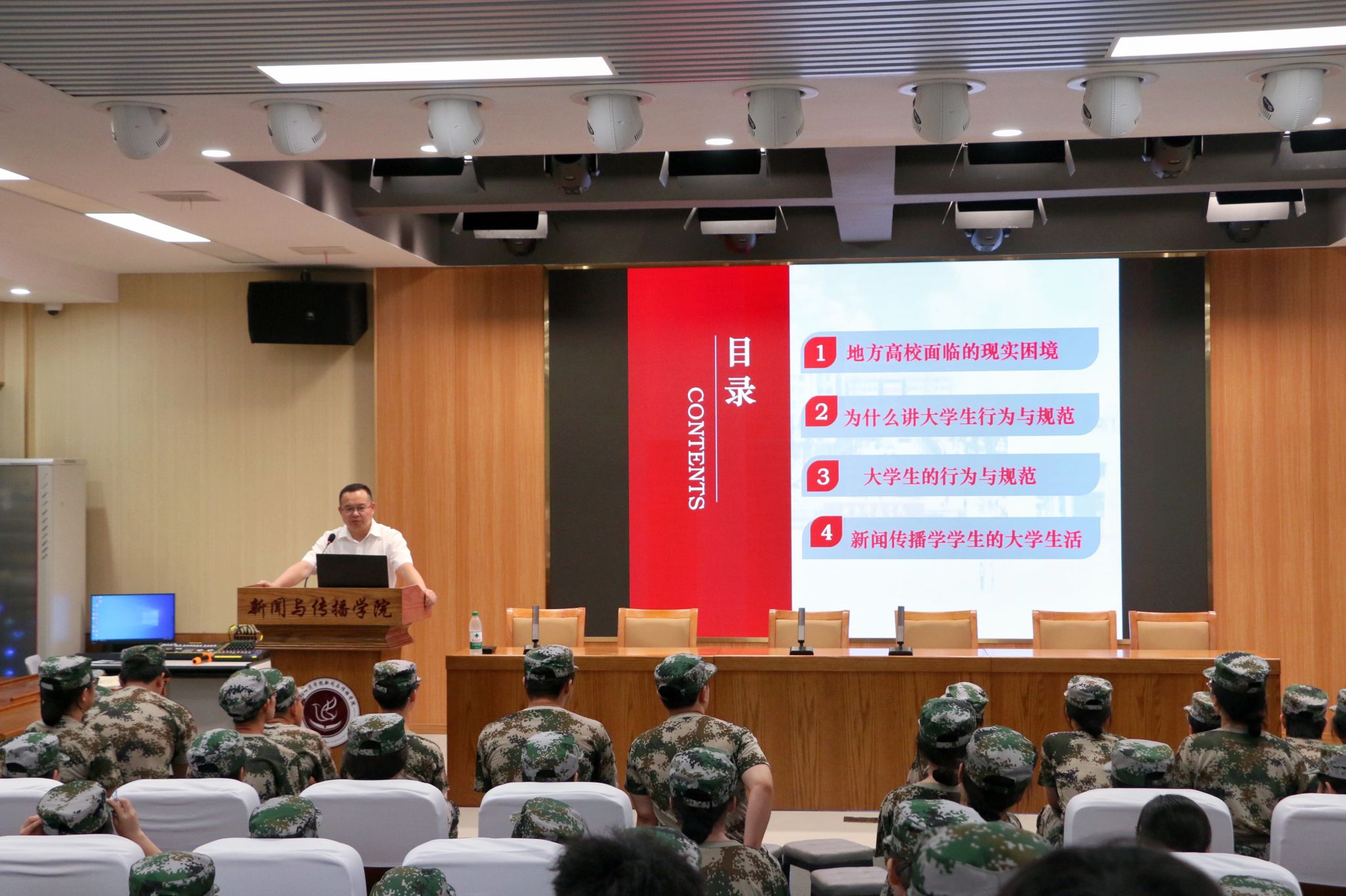 2024年9月13日,365英国上市集团于文科楼一楼演播厅顺利举行了主题为“地方高校新闻与传播学学生日常行为规范”的讲座,365英国上市集团党总支副书记董自雄担任主讲人,2024级全体学生到场聆听。